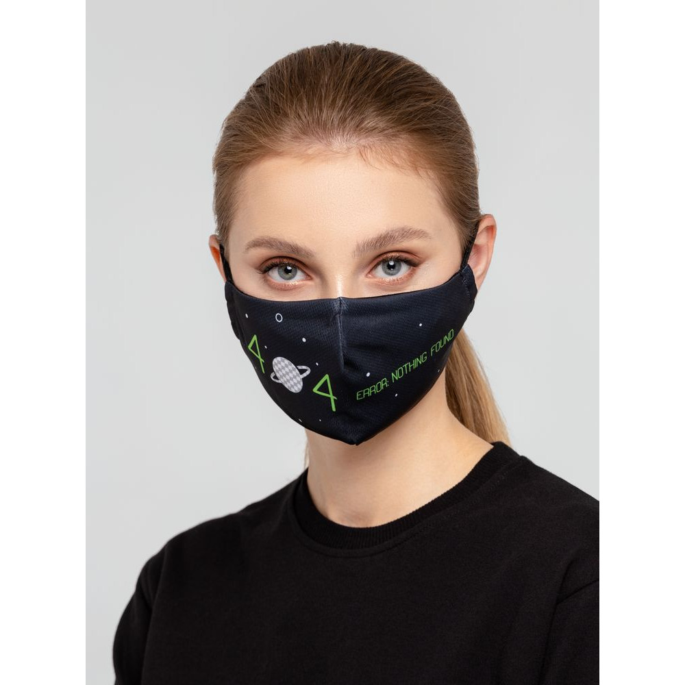 Набор из трех многоразовых масок из дышащей ложной сетки с ярким принтом с гигиенической хлопковой подкладкой и заушниками-резинками.