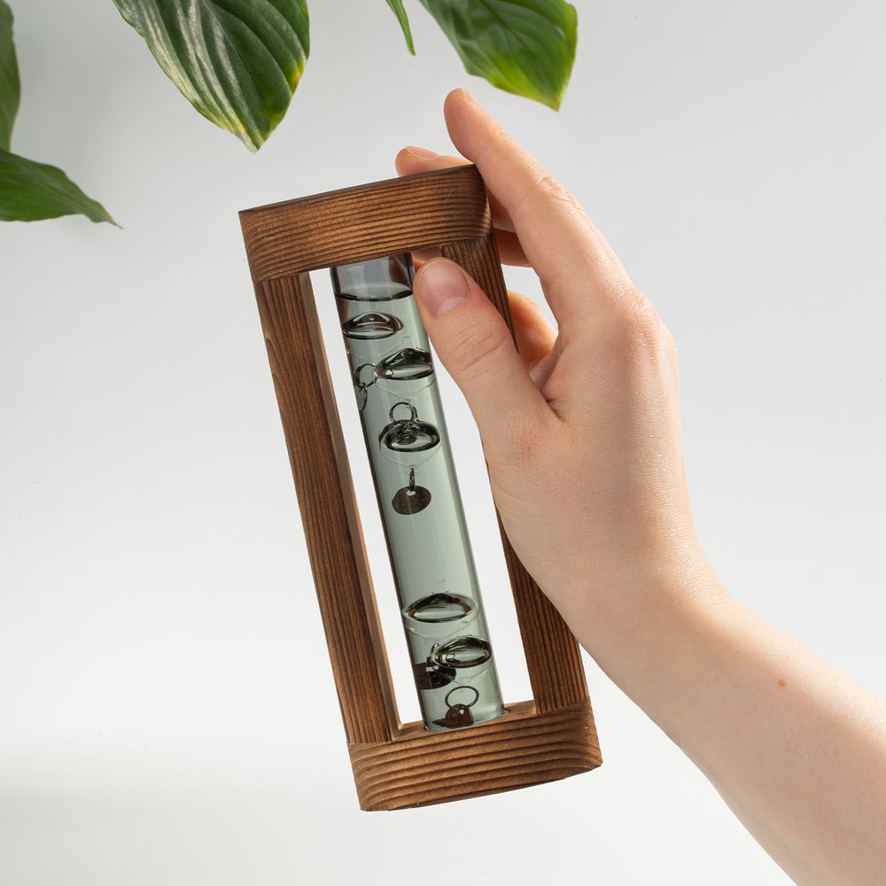 Деревянный корпус добавляет устройству солидности и делает его отличным деловым подарком для оформления офисного интерьера, вдобавок такой оригинальный термометр всегда порадует своей функциональностью и необычным исполнением.