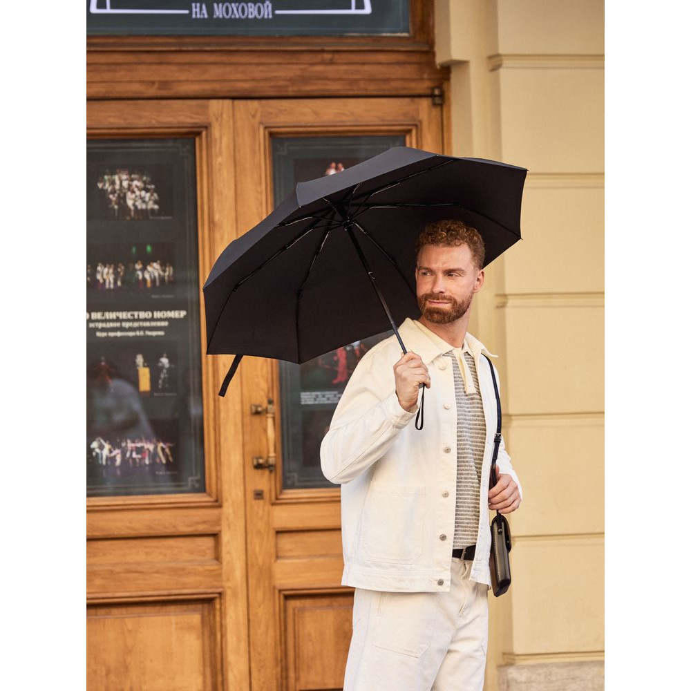 Черный купол и удобный механизм делают его незаменимым спутником в городе: от утреннего кофе до вечерних прогулок.