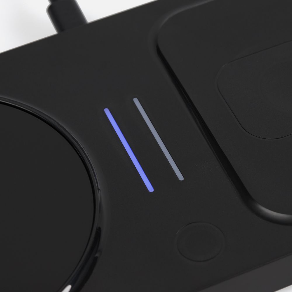 - Зона беспроводной зарядки для смартфона, наушников и часов