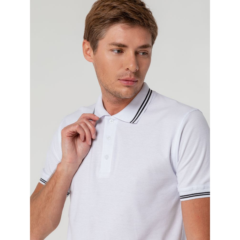Мужская рубашка поло прямого силуэта с контрастными деталями.