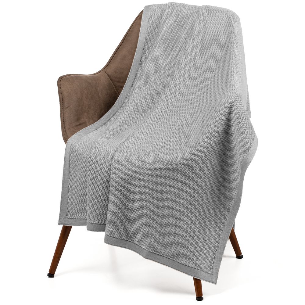 Плед из полушерстяной пряжи, поэтому прекрасно согревает и неприхотлив в уходе.